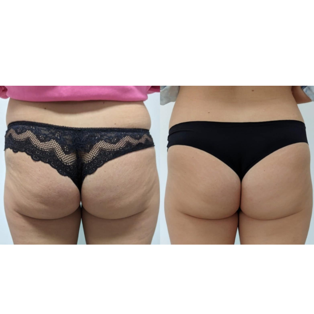 Efekty przed i po zaprezentowane na zdjęciu, są jedynie możliwymi efektami osiągniętymi po jednym/serii zabiegów. Jednak każda klientka jest inna, dlatego rezultaty są bardzo indywidualne (wpływają na nie takie czynniki jak: styl życia, kondycja skóry itp.)